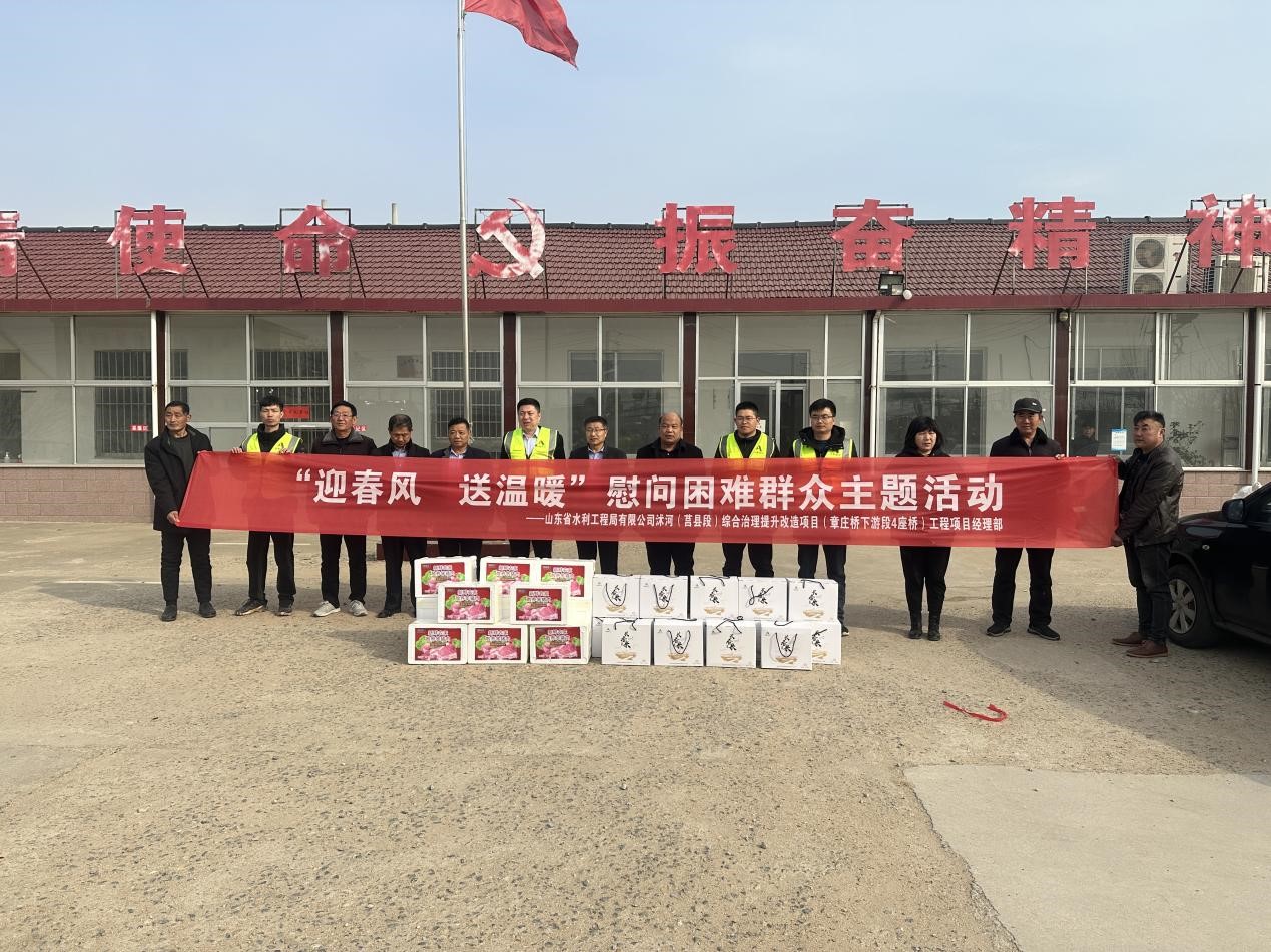 2月22日,第一工程公司黨支部書記蘇東虎一行等人在莒縣劉官莊鎮(zhèn)黨委委員、副鎮(zhèn)長蔣為光陪同下,到公司莒縣項(xiàng)目部駐地柳河村、前云村開展“迎春風(fēng)、送溫暖”走訪慰問活動(dòng)。