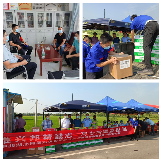 8月12日,湖北同晟龍悅公司聯(lián)合黨支部向黃梅縣大河鎮(zhèn)政府送去醫(yī)用酒精、礦泉水、方便面等抗疫物資,并組織職工投身抗疫一線,積極參與政府組織的疫情排查工作,彰顯國(guó)有企業(yè)的社會(huì)責(zé)任擔(dān)當(dāng)。