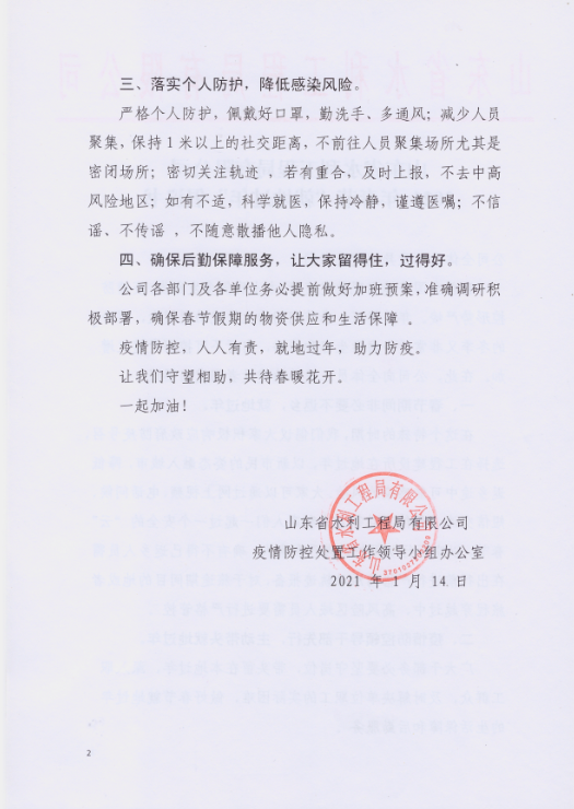 山東省水利工程局有限公司2021年春節(jié)“就地過(guò)年”倡議書